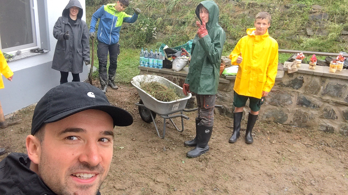 Teilweise wie ein mild-regnerischer Oktober mitten im Juli. Einfach herrlich. Haha... Das gibt uns die Gelegenheit, unsere Abhängigkeiten in so manchen Dingen zu erkennen und zugleich zu erwarten, dass Gott sich uns ganz nahe zeigt, indem er die Wolken zur richtigen Zeit bewegt. Wer die Herausforderung annimmt, bekommt dabei auch die Chance auf eine Runde Charakterschule geschenkt. Gummistiefel und Regenjacke an. Dran bleiben, weitermachen, durchhalten – trotz Nässe, trotz Schlamm, trotz … Und tatsächlich … wir kommen voran!